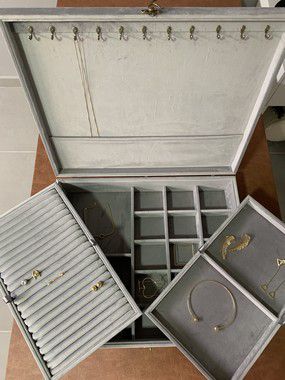 Nela voce pode guardar óculos, relógios,anéis, brincos,pulseiras,colares ou que desejar.