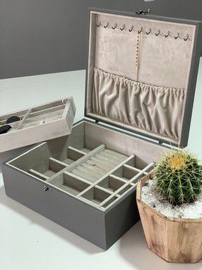 Nela voce pode guardar relógios,anéis, brincos,pulseiras,colares ou que desejar.