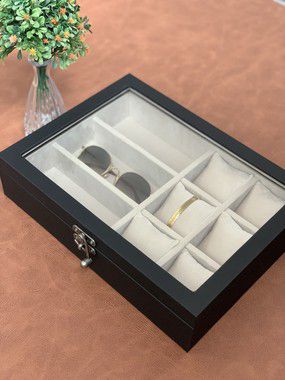 Nela voce pode guardar óculos, relógios,anéis, brincos,pulseiras,colares ou que desejar.