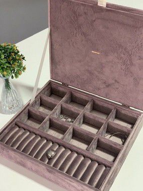 Nela voce pode guardar relógios,anéis, brincos,pulseiras,colares ou que desejar.